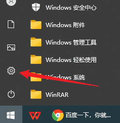2、点击任务栏“开始”按钮,在弹出的菜单中点击“设置”齿轮图标。
