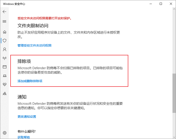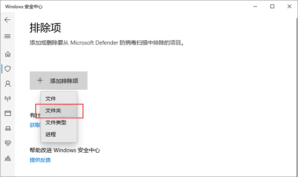 8、点击“添加排除项”按钮,并选择“文件夹”选项。